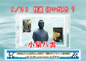 ●【怪談(かいだん)?】今日は「小泉八雲」の忌日(1904年・54歳)。出生名はラフガディオ・ハーン。米国の通信員として来日、島根の松江中学の英語教師に。松江藩士の娘・小泉節子と結婚し、帰化して小泉八雲と名乗る。東京帝大・早稲田大の講師にもなり、短編小説『怪談』などを執筆。