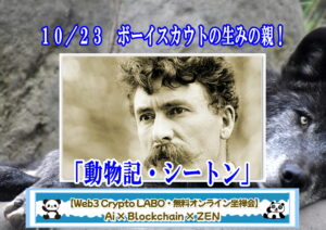 ●【ボーイスカウトの生みの親!】10/23は「動物記」と子供の野外生活活動の支援で知られる、アーネスト・トンプソン・シートンの忌日(1860―1946)。アメリカの博物学者・動物作家・画家で、美しい挿絵を入れた野生動物の物語で有名。代表作は狼王ロボなどを集めた「私の知る野生動物」