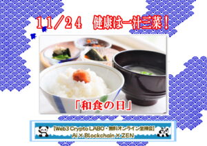 ●【健康は一汁三菜!】今日は「いい(11)に(2)ほんしょ(4)く」の語呂合わせで「和食の日」。新鮮な食材と、その持ち味を大切に「一汁三菜」といった健康的で季節感のある盛り付けや、地域行事と結びついた郷土料理が特徴。「和食」は2013年にユネスコ無形文化遺産に登録された。