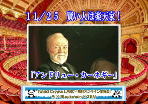 ●【賢い人は楽天家!】今日は鉄鋼王「カーネギー」の生誕日(1835年)。スコットランドに生まれ、1870年代にカーネギー鉄鋼会社を創業。1890年代には世界最大で最も高収益の会社となった。カーネギー研究所や教育財団の設立。カーネギー・ホール、大学、図書館など、社会と教育に貢献。